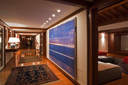 E estrutura de madeira e pedra contribui para integrar a construção com o ambiente natural. Um palácio contemporâneo que busca não ser um marco, ao contrário, disfarça –se e, diferentemente do passado, ao invés de definir a paisagem nela se esconde.